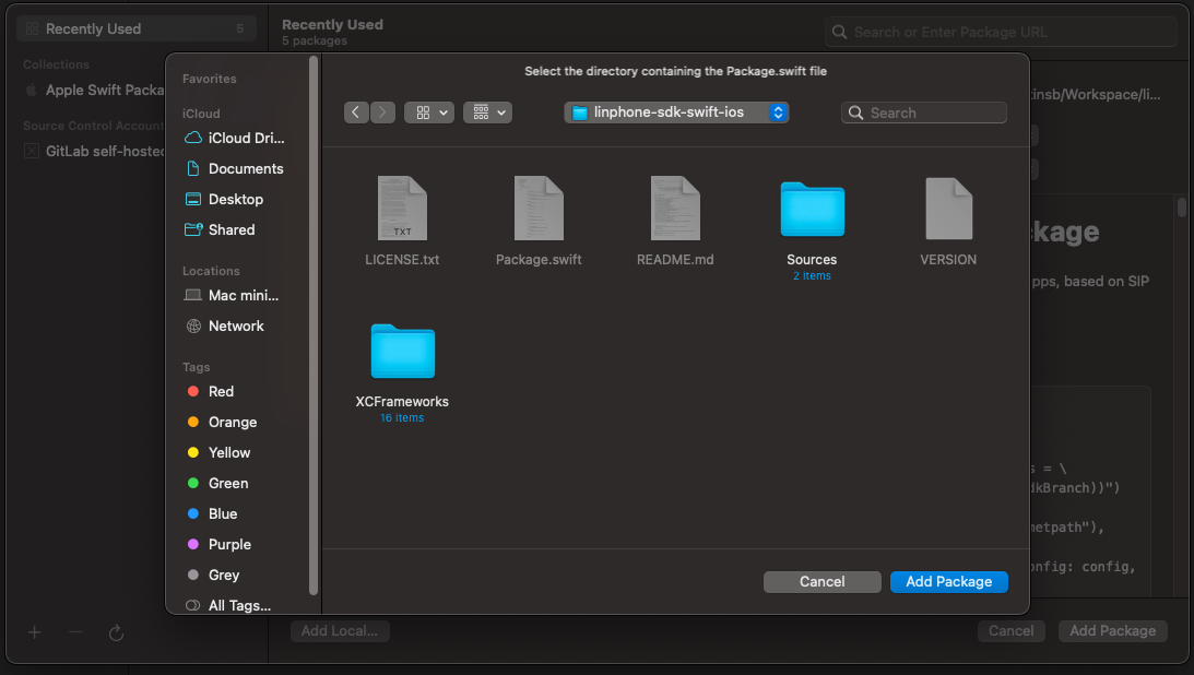 • Follow your path: yourSdkPath/linphone-sdk/spm-ios/linphone-sdk-swift-ios