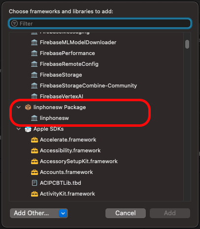 • Follow your path: yourSdkPath/linphone-sdk/spm-ios/linphone-sdk-swift-ios